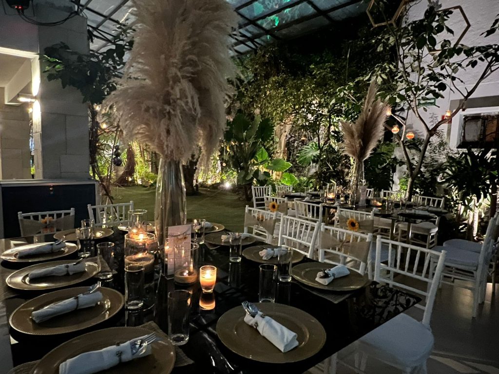 Descubre un jardín de eventos único con más de 380 m² de espacios diseñados con estilo. Rodeado de jardines verticales, cuerpos de agua y una atmósfera mágica gracias a la iluminación arquitectónica, cada rincón ofrece una experiencia inolvidable.